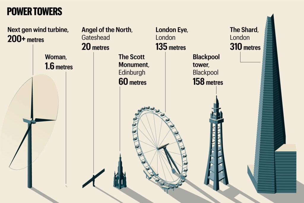 It’s hard to comprehend how large the turbines proposed for rural Wales really are. Image credit The Times
